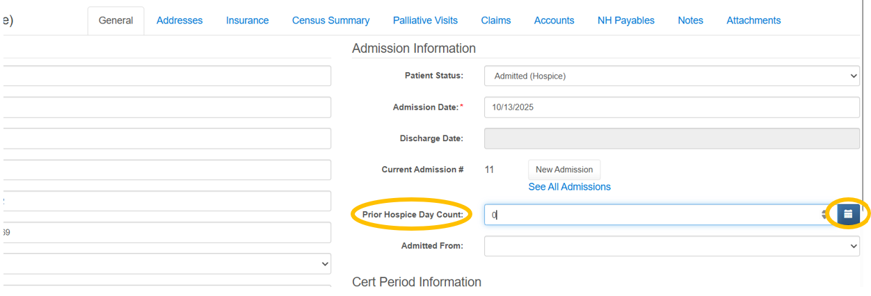 In an effort to better manage your account more closely to reflect the expected reimbursement amount, we would like to ask/remind you to please enter the last known reported hospice cert period in the Prior Hospice Day Count in eBilling for any patients you admit that have previously reported periods on the Medicare CWF (for any patient that is admitted/transferred to you in a period beyond a 1st 90).